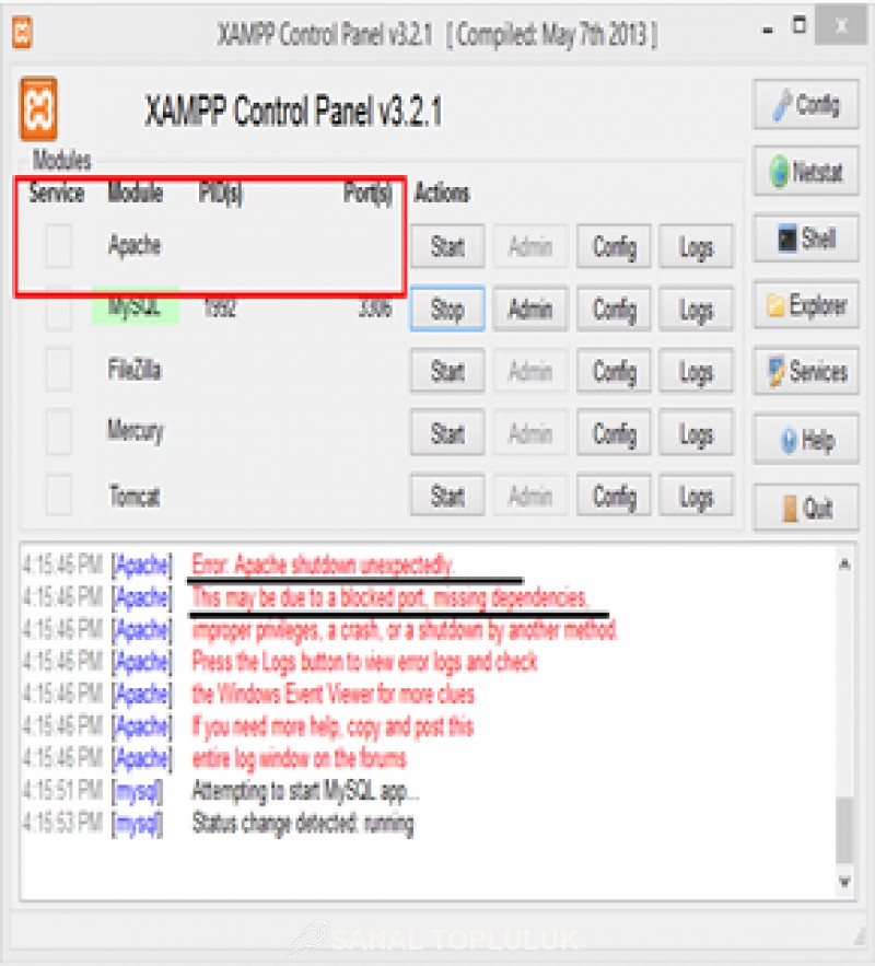 HATA: Error: Apache shutdown unexpectedly.